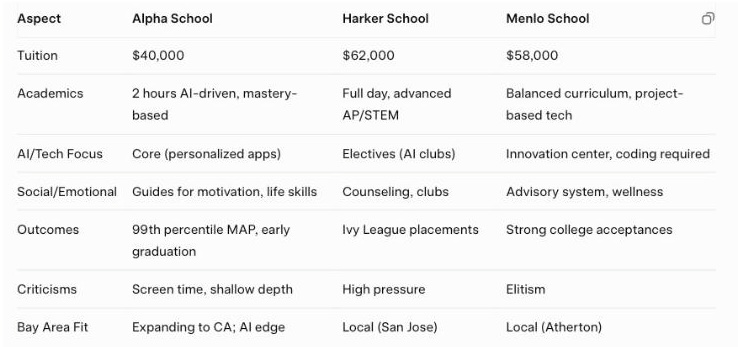 Here's a simple Alpha stacks up against the elite privates most families are also considering, for a a detailed comparison, subscribe to our newsletter as we are adding bay area specie contents :